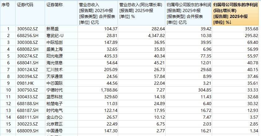 基本面上,截至8月27日,双创龙头ETF(588330)标的指数50只成份股中已有38只正式披露半年报,其中16只成份股归母净利润实现正增长!其中,光模块三巨头业绩亮眼!新易盛、中际旭创、天孚通信归母净利润增速分别为355%、69%、35%。寒武纪营业总收入同比大增4347.82%,暂居首位。